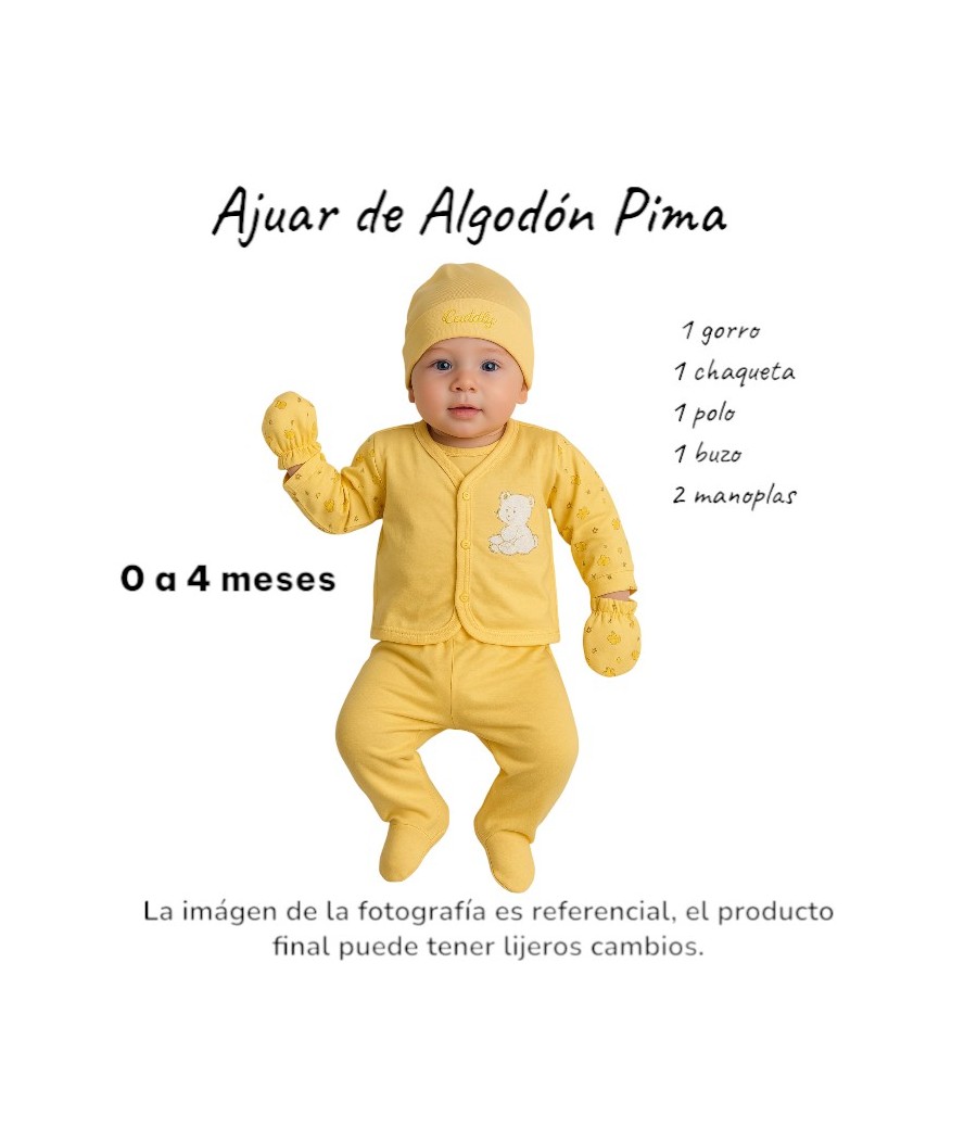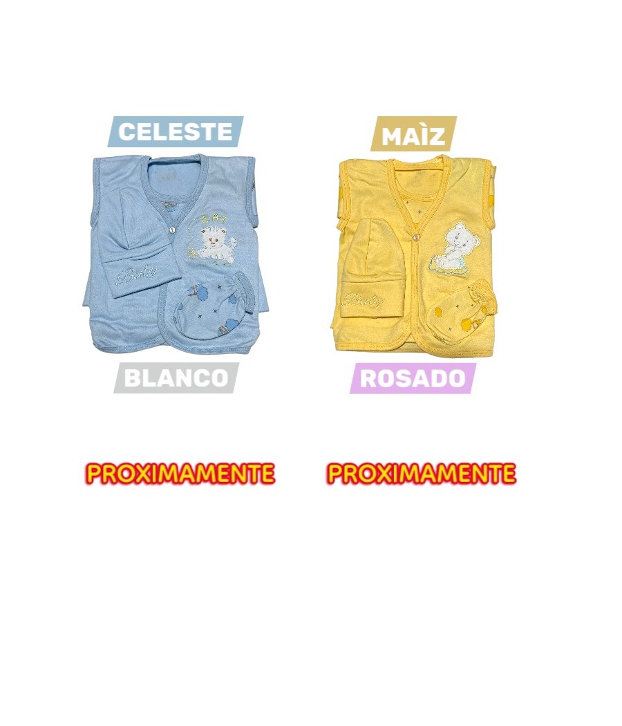 : S/.17.00 49.85% de descuentoDale a tu bebé el confort que merece con este delicado ajuar confeccionado en algodón suave y transpirable. Su diseño estampado en tonos celeste transmite ternura y frescura, ideal para cualquier ocasión del día.